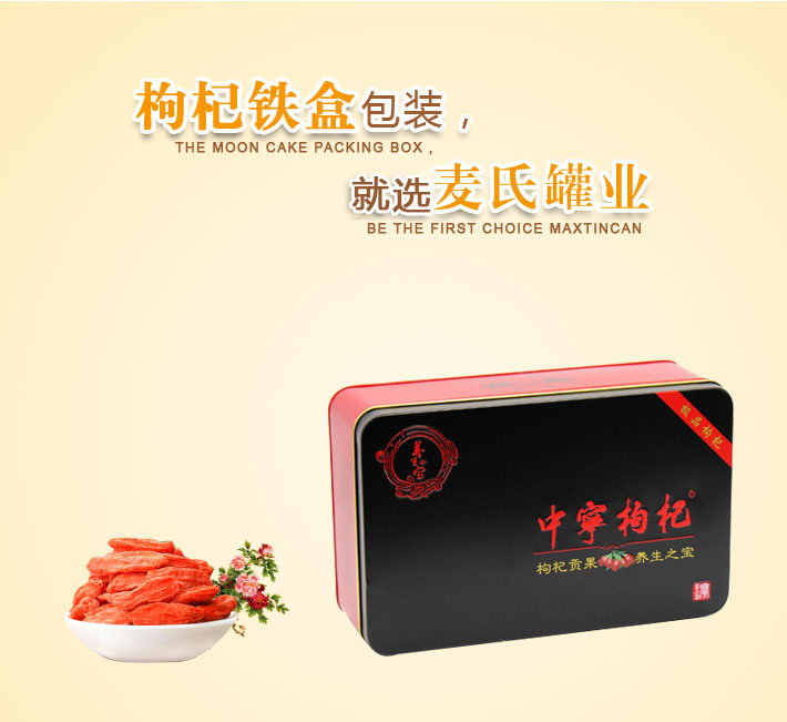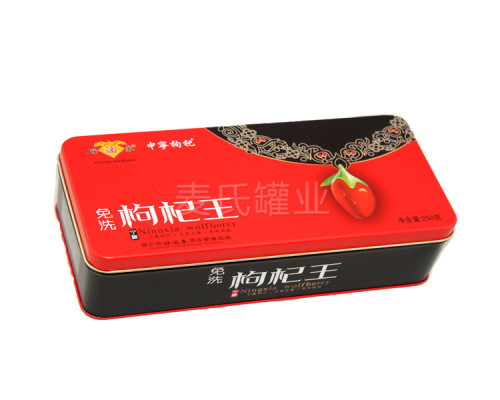 產品咨詢: 定做350g枸杞鐵盒子,長方形黑枸杞包裝盒,食品鐵盒加工廠