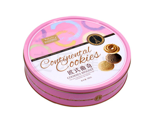 此款餅干鐵盒包裝采用CMYK印刷工藝,使顏色清晰、飽滿;在餅干鐵盒包裝數量較少的情況通常采用的都是四色印刷(CMYK),如果您的定制的鐵盒數量達到專版數量,且設計稿大部分顏色為統一顏色,可以采用專色印刷,提高設計稿的設計效果。