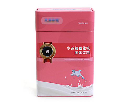 此款DHA凝膠糖果鐵盒包裝采用方形外型,內卷線蓋,身縮口,扣底蓋結構,使其密封性能得到進一步的提升,盒身為一片鐵沖壓制成,經過扣骨處理,無飛邊劃手現象。底部為外卷線鑼底。350*220*55mm的規格尺寸,您也可以定制圓形、異形、三角形等其它精致盒型,多樣化的滿足您對鐵盒方面的要求。