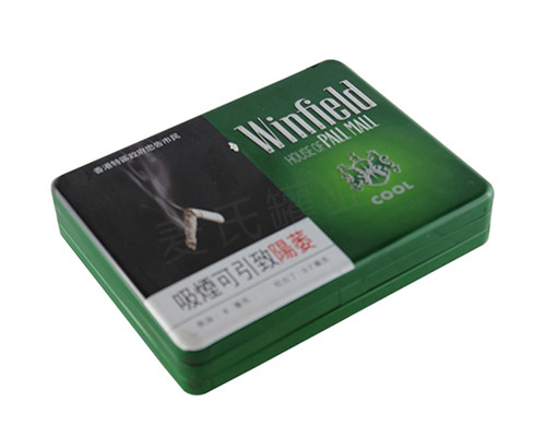 此款翻蓋香煙鐵盒為經典的長方形造型設計,99*66*19mm尺寸,可包裝20只裝香煙產品。為了順應多樣化的市場包裝需求,此款翻蓋香煙鐵盒可做成正方形、心形、圓形、橢圓形、車形、書本形等異形造型。