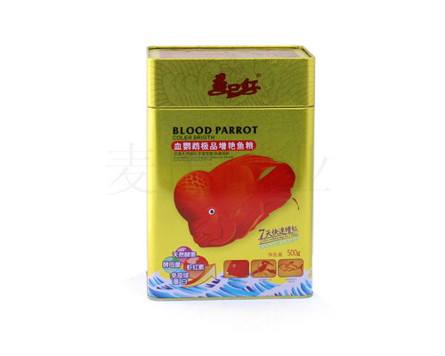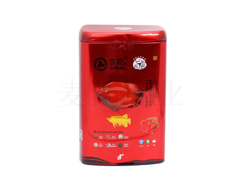 此款500克裝多功能魚糧鐵盒,采用進口0.23mm厚度的鍍錫磨砂鐵制成,色彩配搭融洽、款式精美,方形經典造型,可包裝500g左右的魚糧,能滿足您大容量的產品包裝需求,鐵盒采用四色+一專色印刷處理,表面LOGO 經雕刻處理,圖文形象生動。是一款實用的魚糧鐵盒,您值得擁有!