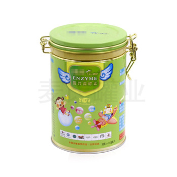 此款酵素鐵盒產品,是國內目前主流、型的保健品金屬包裝容器,形狀為經典大氣的圓形結構(形狀可進行客戶要求制作),主要包裝酵素、乳酸菌粉、益生菌粉等產品。關于規格尺寸方面,客戶可自行提供所需的鐵盒尺寸,可選擇開?;蚋哪5刃问蕉ㄖ七m合自己的鐵盒尺寸。