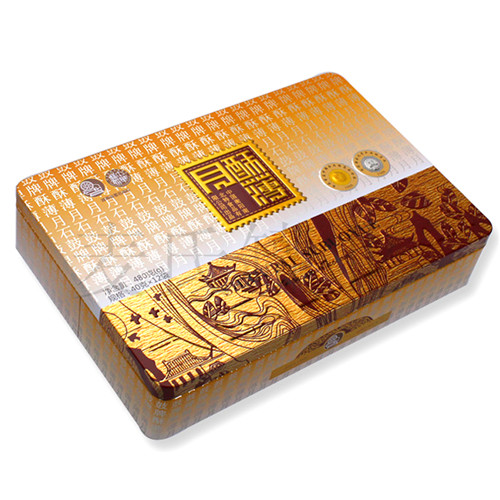 薄酥月餅馬口鐵罐材質:一級(鍍錫)馬口鐵;可選擇磨砂鐵、銀光鐵等材質進行制作,鐵料厚度0.23-0.30mm可選擇;