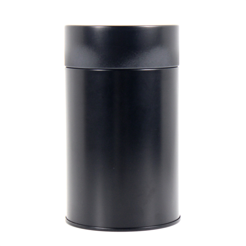 此款黑色圓形通用茶葉鐵罐采用0.23mm鍍錫馬口鐵制作,客戶可根據自身需求,選擇0.23-0.28mm的馬口鐵/磨砂鐵制作,若選擇磨砂鐵制作鐵罐可使得材質表面有強烈的沙礫效果,在觸感上會變得更加有感覺。