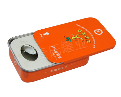 • 滑蓋人參片鐵盒包裝,保健食品馬口鐵盒