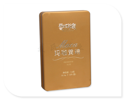 此款滑蓋人參片鐵盒包裝,保健食品馬口鐵盒采用國產一級馬口鐵沖壓而成,單面四色印刷工藝,外過啞油、內過食品級金油,非常適合包裝各種保健食品。