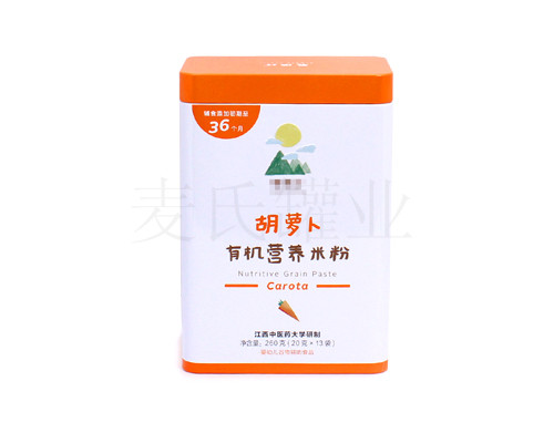 此款嬰童輔食鐵盒,基材選用0.23mm厚度鍍錫馬口鐵制作,塑造性高,易于加工時馬口鐵盒的特點(diǎn),可根據(jù)您的制作要求制出圓形、異形、心形、橢圓形等其他形狀。也可根據(jù)您的定制需求,選擇進(jìn)口或國產(chǎn)的馬口鐵/磨砂鐵(厚度選擇0.20mm-0.30mm)。