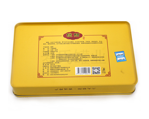 此款開窗金鎖陽瑪咖片鐵盒,其制作材質采用的0.23mm鍍錫馬口鐵制成,具有優異的密封性、耐蝕性等,具備強烈的金屬光澤質感。此款鐵盒更適用于包裝各種男性保健產品。特征鮮明的外觀印刷效果搭配個性化的開窗結構設計,能吸引消費者目光的同時,還讓消費者一時間能了解產品的各種屬性特點。使得此款鐵盒產品用來包裝保健產品更適合不過,不僅能體現內部金鎖陽產品的特征,還提升此款包裝產品的檔次度,擴大了產品品牌的推廣力度。