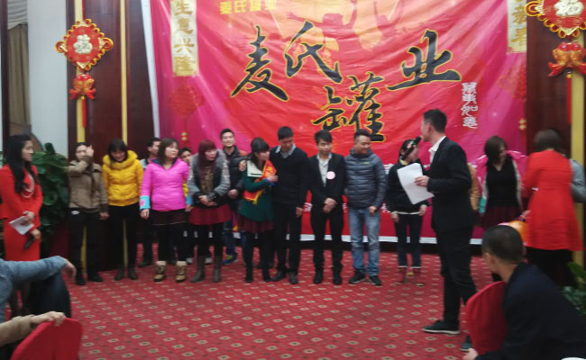 歷屆晚會一般分領導致辭、員工表彰和文藝演出三部分進行,今年也不例外。晚會在麥氏總經理麥劍鋒先生和豐兆集團董事長麥志強先生的新年賀詞并祝酒中揭開帷幕。接下來,表彰優秀員工和節目表演一一進行。晚會上舞蹈、歌曲等節目精彩紛呈,各種晚會活動及游戲調動著現場火爆持久的氣氛,將晚會引入一個又一個的高潮。