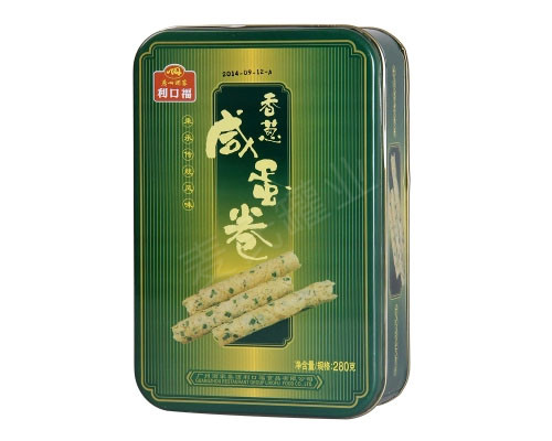 這款馬口鐵手工蛋卷盒,材質為的鍍錫馬口鐵板材制成,具有強烈的凹凸感覺,鐵盒整體富有砂礫狀效果。在質量方面,具有優異的防潮耐蝕性能,保證盒內的蛋卷產品長期處在干燥密封的環境下,不易受潮發霉。鐵盒為外卷線天地蓋設計,精巧的盒身搭配天地蓋結構,方便消費者攜帶使用。