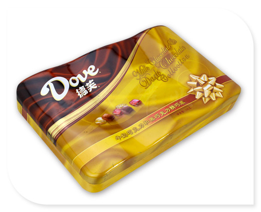 此款巧克力鐵罐包裝為新穎的橢圓形造型設計,290*180*30mm尺寸,可包裝240g不等的巧克力產品,能滿足大容量產品包裝需求。為了順應多樣化的市場包裝需求,此款巧克力鐵罐包裝可做成正方形、心形、圓形、車形、書本形等異形造型。