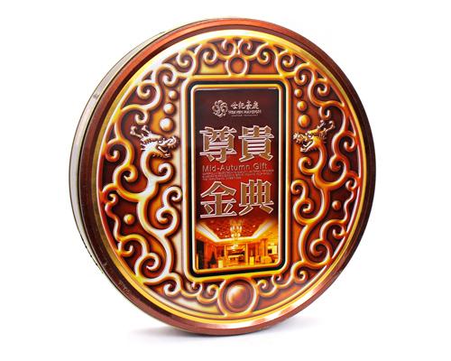 這款七星伴月月餅鐵盒,具備著經典又上檔次的圓形外觀造型,形象生動圖面設計,更符合現代消費者對月餅包裝的體現。
