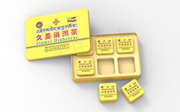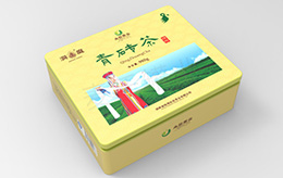 青磚茶鐵盒:特別的包裝閃亮登場,主體色以淡黃色為引導。配上茶葉種植園與苗族少女形象,恰好點明了青磚茶產地的特點......