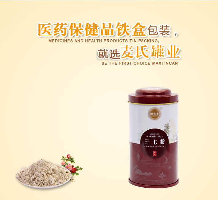 產品咨詢: 供應三七粉包裝鐵罐,半斤裝三七粉鐵盒子,保健品鐵皮盒制作