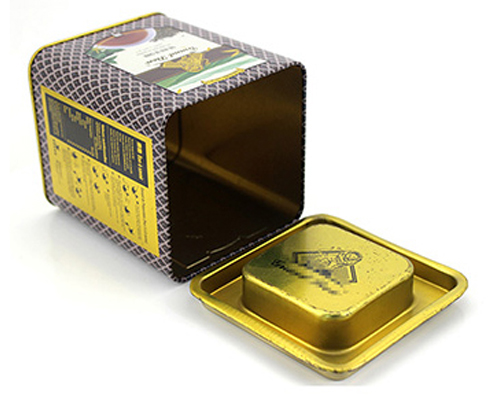 這款馬口鐵茶葉鐵盒包裝為單面CMYK四色印刷處理,外過水性亮光油,內涂金油,過油目的不僅能提高鐵盒整體效果,具有強烈的金屬質感外,還對鐵盒印刷面形成一層致密的保護膜,對鐵罐刮花、防銹起到一定的防護作用。除了過光油、透明油外,客戶還可選擇過皺紋油、珠光油、爆炸油等。